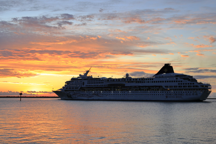 日没まで撮影を粘っていると巨大なクルーズ船が現れたました。