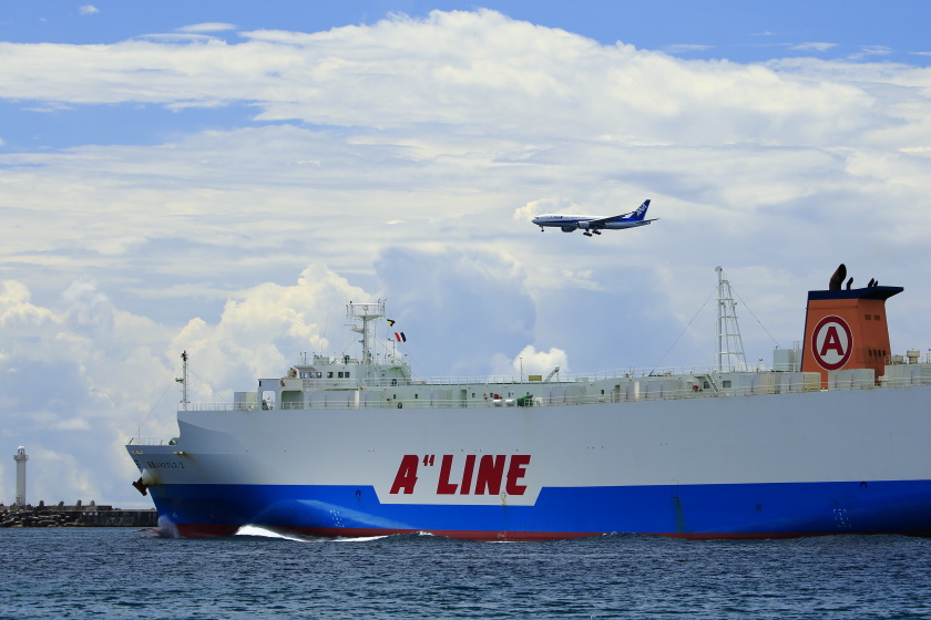 羽田空港でも見かける「A"LINE」のロゴマーク目立つ貨物船「琉球エキスプレス」でかい!